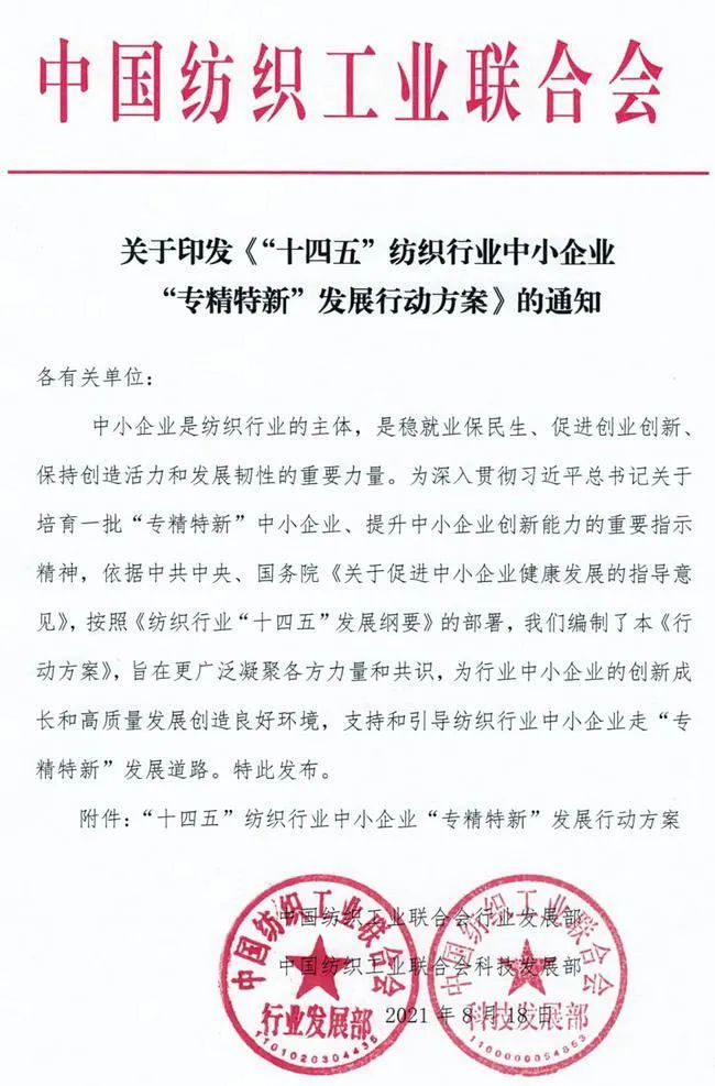 《“十四五”紡織行業(yè)中小企業(yè)“專精特新”發(fā)展行動方案》發(fā)布