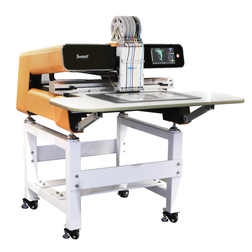 來自意大利設(shè)計(jì),本機(jī)廣泛應(yīng)用各類成品(例:成衣繡、帽繡、背包、抱枕等各類成品)不同位置選用不同框架刺繡;可選配多色亮片裝置、珠管裝置等任何附加裝置。