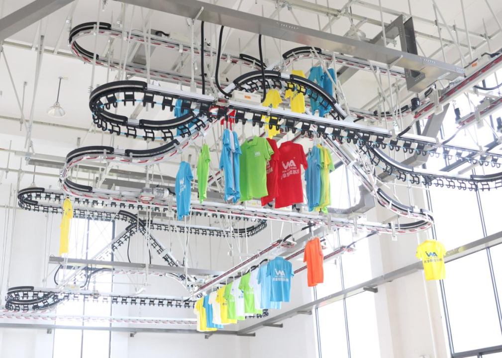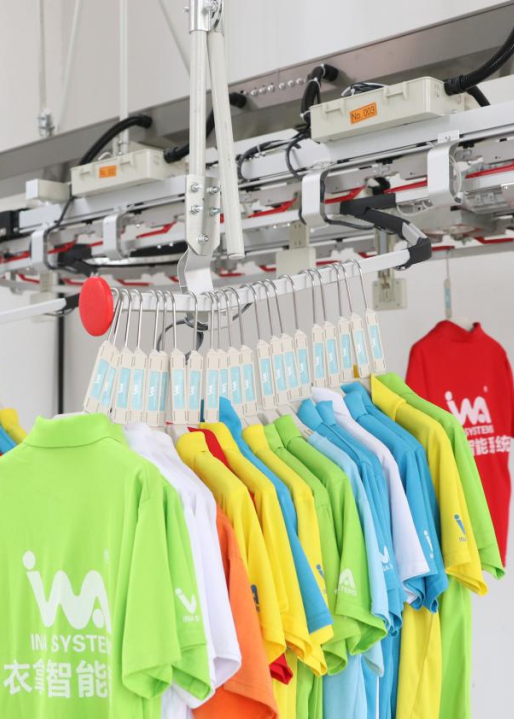 衣拿智能吊掛系統(tǒng)可配合衣拿自主開(kāi)發(fā)的INA IPMS系統(tǒng)實(shí)現(xiàn)多點(diǎn)投放,快速分組,跨樓層運(yùn)輸?shù)裙δ?,減少站位安排的時(shí)間浪費(fèi);各部門(mén)隨時(shí)掌控相關(guān)生產(chǎn)數(shù)據(jù),實(shí)現(xiàn)全廠(場(chǎng))貫通,幫助企業(yè)提升管理品質(zhì)。