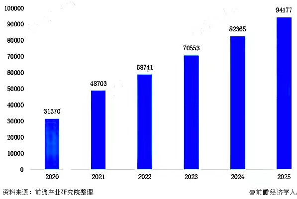 鑒于此, 工業(yè)互聯(lián)網(wǎng)平臺(tái)便成為制造業(yè)轉(zhuǎn)型于智能制造的重要抓手。根據(jù)我國(guó)前瞻產(chǎn)業(yè)研究院研究,2020年至2025年我國(guó)工業(yè)互聯(lián)網(wǎng)產(chǎn)業(yè)經(jīng)濟(jì)總體規(guī)模如圖十一所示,2022年產(chǎn)業(yè)規(guī)模可達(dá)5.874萬(wàn)億元。