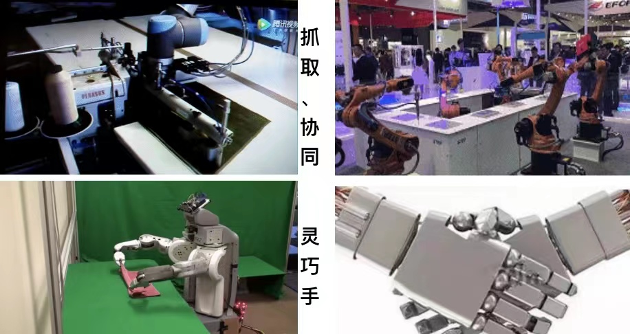 服裝智能制造工廠中就是應(yīng)用數(shù)據(jù)智能分析機(jī)器人,其難度也要遠(yuǎn)比其他制造業(yè)難得多,其中最難的是衣片的精準(zhǔn)的抓取與輸送、加工模塊的協(xié)同、靈巧手的折疊與鋪攤,見(jiàn)圖十四,這要靠今后繼續(xù)發(fā)展的。