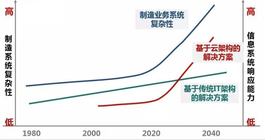 由于制造業(yè)業(yè)務(wù)復(fù)雜性,它的復(fù)雜性已經(jīng)不是傳統(tǒng)的信息技術(shù)所能解決的,隨著制造系統(tǒng)復(fù)雜性不斷提高,信息技術(shù)的響應(yīng)能力也要不斷提高,智能制造的復(fù)雜性需要智能云端架構(gòu)的信息系統(tǒng)來(lái)解決。