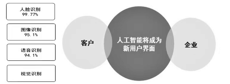 根據(jù)2019年埃森哲的預(yù)測(cè),現(xiàn)在人工智能已經(jīng)超過(guò)人類智能,特別在人臉識(shí)別、圖像識(shí)別、語(yǔ)音識(shí)別上;到2025年全球?qū)⒂?7%的制造業(yè)會(huì)部分使用人工智能技術(shù);而在未來(lái)10年人工智能技術(shù)將成為企業(yè)和客戶之間的主要交互界面(UI),見(jiàn)圖十七。換句話說(shuō),這意味著制造業(yè)以人工智能技術(shù)打造的智能制造將成為客戶與企業(yè)的主要交互界面,而這一切將發(fā)生在未來(lái)10年!